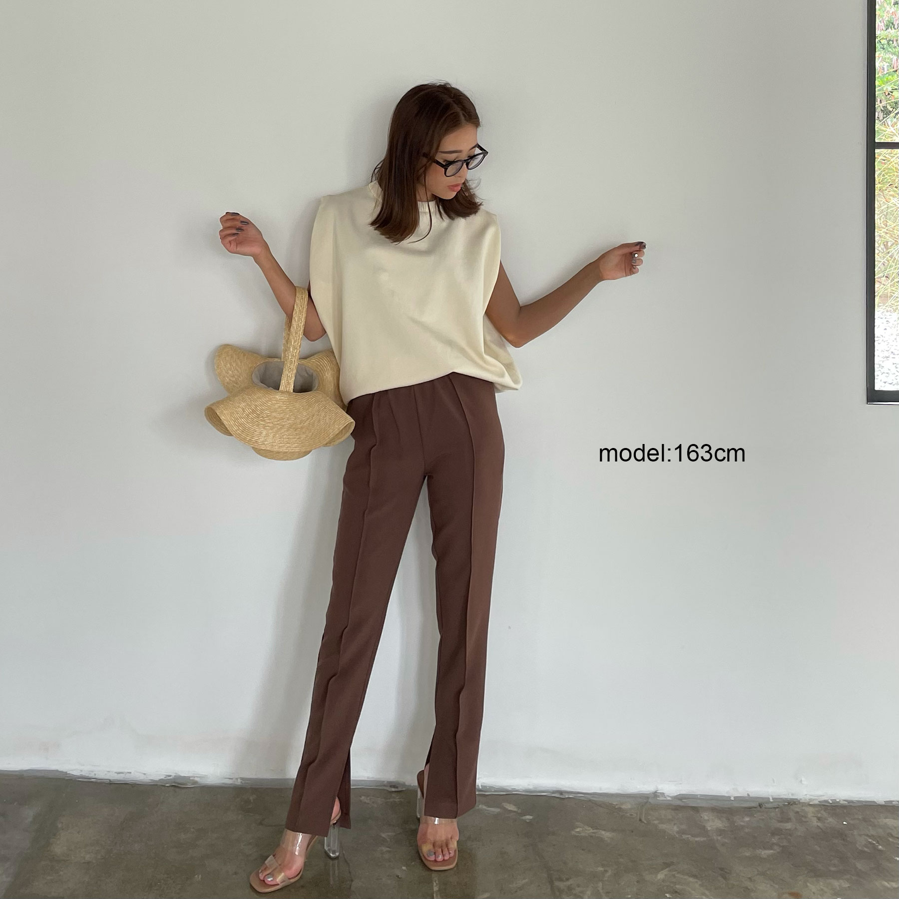 ・サイドスリット入りで着用時 程よいフレアなシルエットが美しい アイテムです ・フロントセンターラインデザイン ・脚のラインを拾いにくく真っ直ぐな 美脚ラインを演出。