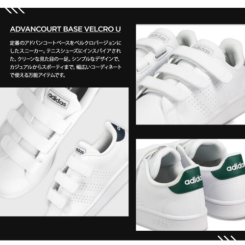 アディダス スニーカー メンズ アディダス スニーカー レディース 白 スニーカー ジュニア シューズ ローカット 通学 adidas マジックテープ ベルクロ ホワイト アドバンコート ADVANCOURT BASE VELCRO U GX0723 GX0724 GX0727 送料無料