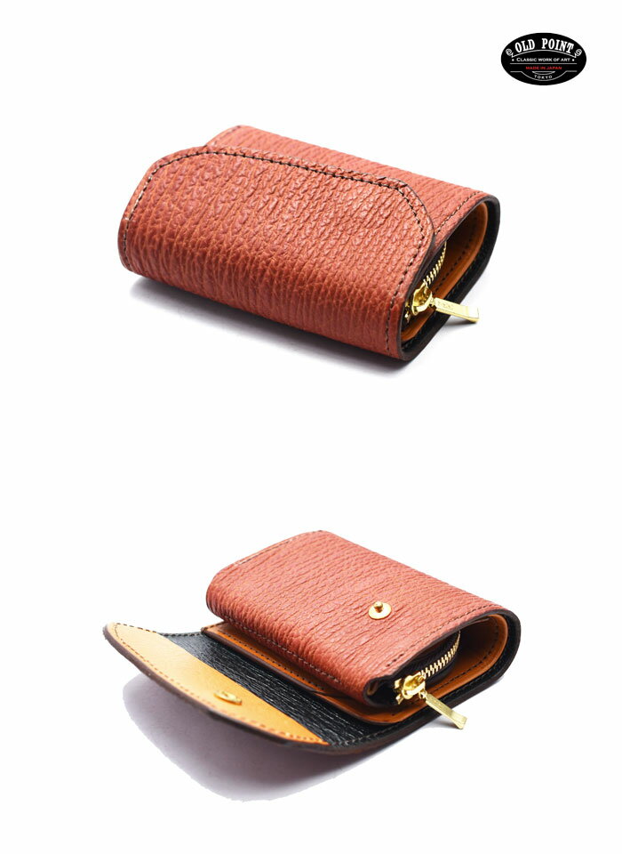 ■商品説明 ■メーカー名: OLD POINT オールドポイント -匠 Takumi- ■品名:三つ折りミニウォレット ■カラー/素材: 外装:ブラウン【BRN】/シャークスキン・鮫革 内装:ナチュラルブラウン【NBRN】/シュリンクレザー・牛革 裏貼:ブラック【BLK】/豚革 ■サイズ:H100×W75mm ■ホック:プリムホック ■縫製:ミシン ■収納:マチ付きカードポケット×1、カードポケット×1、小銭入れ×1、札入れ×1 ■店長コメント OLD POINT オールドポイント -匠 Takumi-は、 国内屈指の技法を持つトップクラフトマンに作製を依頼した拘りのハンドクラフト製品を展開する カオスオリジナルブランドです。