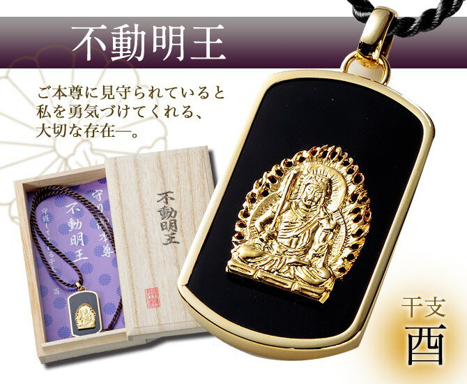 CODE 商品コード 104106037 ITEM 商品名 お守り御本尊 八尊仏ペンダント 厄除け 魔除け 開運 ネックレス 不動明王 酉 オニキス パワーストーン 天然石 シルバーアクセサリー 106-037 人気 SPEC スペック サイズトップ/縦約49×横24mm(バチカン含む)、ネックレス/シルク茶、長さ約50cm、オニキス(37×23×3mm) 材質シルバー925、オニキス、ネックレス/シルク茶 表面加工シルバーパーツ/ニッケル金メッキ 原産国日本(Made in Japan) 備考桐箱のギフト箱入り 関連ワード お守り 御本尊 ネックレス 不動明王 オニキス【op-566】\ こちらの商品のお得なサービス / 無料ギフトラッピング・のし対応 自分のご本尊を身近に 目標達成をするために強い意志を与えてくれるといわれる オニキスのプレートに、 シルバー925に金メッキで仕上げた、 ご本尊をメタル貼りしました。