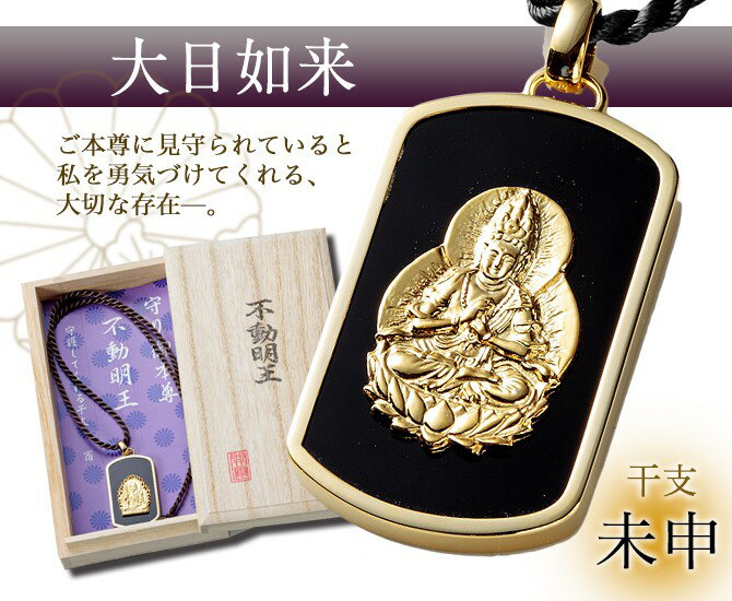 CODE 商品コード 104106036 ITEM 商品名 お守り御本尊 八尊仏ペンダント 厄除け 魔除け 開運 ネックレス 大日如来 未・申 オニキス パワーストーン 天然石 シルバーアクセサリー 106-036 人気 SPEC スペック サイズトップ/縦約49×横24mm(バチカン含む)、ネックレス/シルク茶、長さ約50cm、オニキス(37×23×3mm) 材質シルバー925、オニキス、ネックレス/シルク茶 表面加工シルバーパーツ/ニッケル金メッキ 原産国日本(Made in Japan) 備考桐箱のギフト箱入り 関連ワード お守り 御本尊 ネックレス 大日如来 オニキス【op-566】\ こちらの商品のお得なサービス / 無料ギフトラッピング・のし対応 自分のご本尊を身近に 目標達成をするために強い意志を与えてくれるといわれる オニキスのプレートに、 シルバー925に金メッキで仕上げた、 ご本尊をメタル貼りしました。