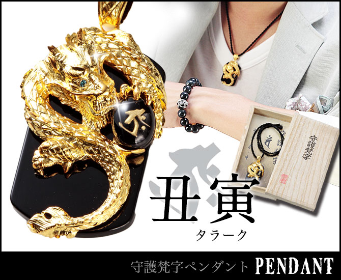 ネックレス メンズ ペンダント 梵字 守護梵字ペンダント パワーストーン 天然石 水晶 オニキス 厄除け お守り 御守り 魔除け タラーク 丑・寅 106-061 ギフト プレゼント 贈り物 返品不可 人気
