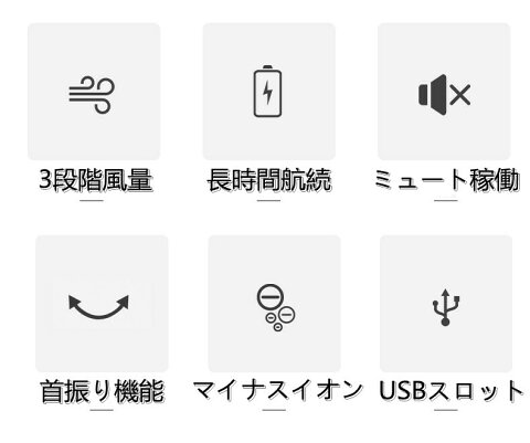 商品情報製品仕様商品名称:空気清浄ファン充電入力:5V/1Aマイナスイオン濃度:≥5x106PCS/cm3充電時間:約3時間バッテリー容量:4000mAh使用時間:1段階8h 2段階4.5h 3段階2.5hカラー:グレー/ブルー/ブラック入力電圧:DC5Vオゾン濃度:【長時間連続使用・静音】長時間連続使用可能です。