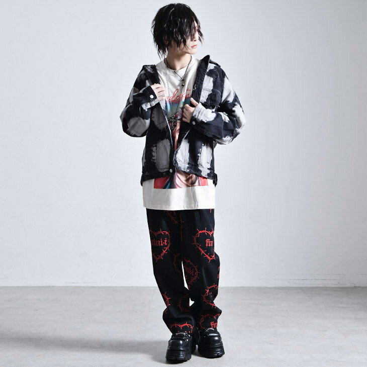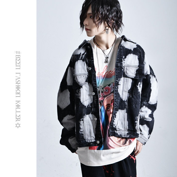† Oz select † Uneven pattern denim jacket 規則正しく施されたブリーチ加工が、モノトーンながらも雰囲気を醸し出すデニムジャケット。