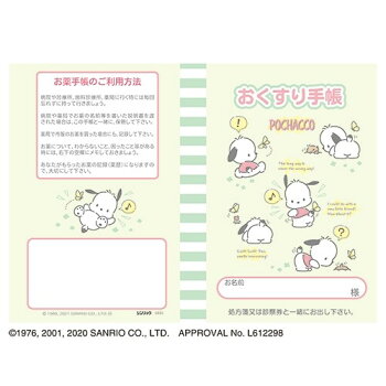【1000円以上お買い上げで送料無料♪】おくすり雑貨 お薬手帳 ポチャッコ お散歩 サンリオ キャラクター カワイイ - メール便発送
