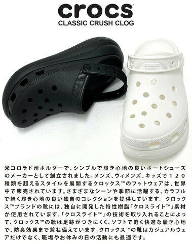 "CROCS【クロックス】クラシッククラッシュクロッグ/全2色"【あす楽対応】クロックス CROCS クラシック クラッシュ クロッグ 厚底 サンダル クラッシュクロッグ 無地 ブラック ホワイト 海 夏 ビーサン ビーチ 黒 白 V系