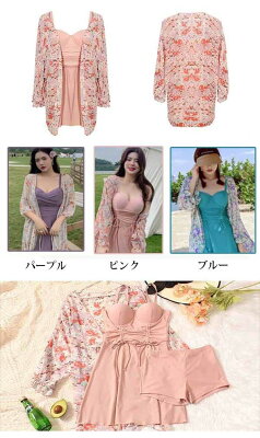 ワンピース水着 大きいサイズ 水着 ぽっちゃり レディース ぽっちゃり水着 袖あり 体型カバー ピンク ブルー パープル セクシー ラッシュガード 着痩せ パッド付 かわいい 女性 海水浴 温泉 韓国風 ml005zezeg5