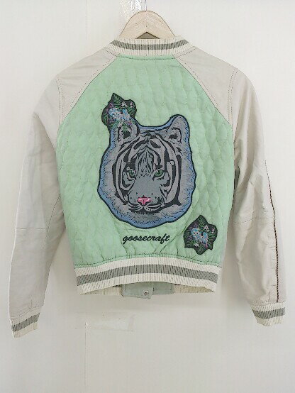 ◇ goosecraft bomber056 やぎ革 羊革 刺繍 長袖 スカジャン サイズM グリーン系 ライトベージュ系 レディース 【中古】管理番号120621001665020220727ベースW1/石付属品無所々に薄汚れあり。