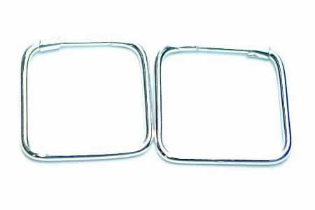 人気のバーリングを四角く加工した個性的なフープピアスです。