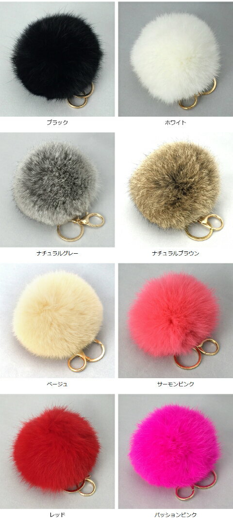 サイズ:直径約9〜11cm カラー:ブラック/ホワイト/ナチュラルグレー/ナチュラルブラウン/ライトピンク/パッションピンク/サーモンピンク/レッド/ベージュ/ライトパープル/パープル/ダークパープル/イエロー/ピンクベージュ 素材:ラビットファー キーホルダーカラー:ゴールド ※天然素材のため色や大きさ、毛並みなど個体差がございます。