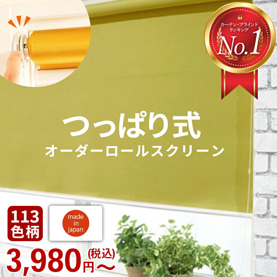 つっぱり ロールスクリーン ロールカーテン 突っ張り 遮光 遮熱 断熱 非遮光 採光 無地 間仕切り 目隠し めかくし 穴あけ不要 取り付け簡単 国産 日本製 1mm単位 オーダー