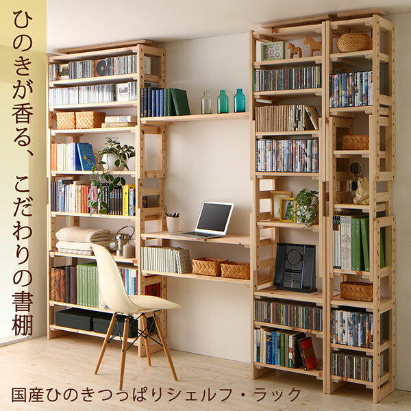 オプションの追加棚で本体同士を連結すれば、ひのきが香る素敵な書斎に。
